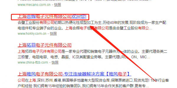 我們公司與上海合輝電子元件有限公司合作中,對這個公司所經營的電子元件X這個行業(yè)提供了百度快照排名,與改公司的合作,更多的客戶讓我們公司為其提供百度快照排名,通過每一次合作,我們公司不斷完善自己,同時希望合作伙伴在經營的路上越來越好。