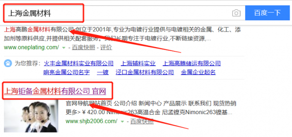 上海鉅備金屬材料有限公司選用我司企業(yè)金屬材料的網(wǎng)站優(yōu)化產(chǎn)品,其SEO關(guān)鍵詞有金屬材料。快速優(yōu)化系統(tǒng)火速推采用智能數(shù)據(jù)系統(tǒng),效果一目了然,包括關(guān)鍵詞排名,消費(fèi),余額等,并通過大量的數(shù)據(jù)分析優(yōu)化廣告效果。上海鉅備金屬材料有限公司成立于2005年,是經(jīng)上海市市場監(jiān)督管理局審核的有資質(zhì)的公司,其統(tǒng)一社會信用代碼:91310120574185526M。公司地址:上海市奉賢區(qū)金碧路1998弄3號。