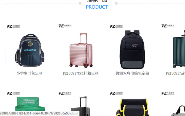 上海方振箱包制品有限公司選用我司企業(yè)的網(wǎng)站設(shè)計(jì)優(yōu)化產(chǎn)品,其seo關(guān)鍵詞為箱包,鎖定海外排名,覆蓋谷歌,雅虎,必應(yīng)等海外主流搜索引擎,搶占海外市場(chǎng), 網(wǎng)站打開速度快,用戶體驗(yàn)好,風(fēng)格多樣化,用戶互動(dòng)性高,增強(qiáng)用戶黏著度 上海方振箱包制品有限公司成立于2008年,是經(jīng)上海市市場(chǎng)監(jiān)督管理局審核的有資質(zhì)的公司,其統(tǒng)一社會(huì)信用代碼:上海市嘉定工業(yè)區(qū)葉城路912號(hào)J4543室。公司地址:91310114674555790E