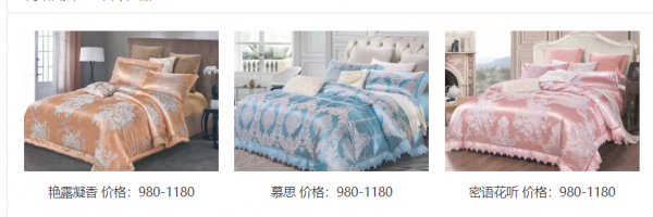 上海嬌夢(mèng)床上用品有限公司選用我司企業(yè)床上用品的網(wǎng)站優(yōu)化產(chǎn)品,其SEO關(guān)鍵詞有床上用品。推廣效果直觀展示,智能化跟蹤分析;報(bào)表日日更新,實(shí)時(shí)查看,盡情掌握推廣動(dòng)態(tài),讓系統(tǒng)代替人工,自動(dòng)化處理大量繁瑣操作將產(chǎn)品信息推廣到三千家營(yíng)銷平臺(tái),覆蓋海量客群。上海嬌夢(mèng)床上用品有限公司成立于2002年,是經(jīng)上海市市場(chǎng)監(jiān)督管理局審核的有資質(zhì)的公司,其統(tǒng)一社會(huì)信用代碼:91310118735424883E。公司地址:上海市青浦區(qū)青浦鎮(zhèn)盈秀路155號(hào)。