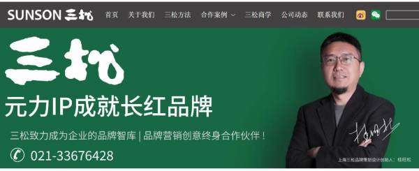 三松是中國知名的品牌營銷創(chuàng)意機構(gòu)三松致力成為企業(yè)的品牌智庫|品牌營銷創(chuàng)意終身合作伙伴 !三松= 營銷策劃公司 + 創(chuàng)意設(shè)計公司 + 創(chuàng)意執(zhí)行公司。三松是中國知名的品牌營銷創(chuàng)意機構(gòu),是企業(yè)的品牌智庫和創(chuàng)意伙伴,為企業(yè)制定戰(zhàn)略,并用創(chuàng)意引爆戰(zhàn)略。創(chuàng)辦23年來協(xié)助多家企業(yè)成為行業(yè)領(lǐng)先品牌。三松以“對位戰(zhàn)略”為指導(dǎo)思想,以“IP化品牌戰(zhàn)略、IP化產(chǎn)品戰(zhàn)略、IP化傳播戰(zhàn)略”為核心方法,為客戶提供從市場策略、產(chǎn)品開發(fā)策略、品牌 策略、創(chuàng)意設(shè)計、到營銷傳播活動落地等一系列實效性品牌創(chuàng)意與營銷咨詢服務(wù)。