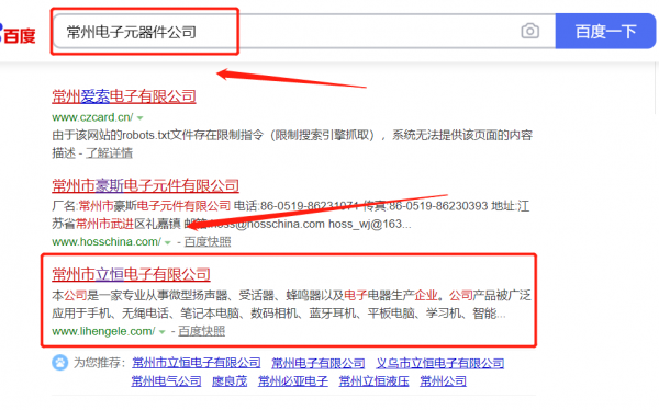 常州市*恒電子有限公司與我司簽下百度霸屏協(xié)議