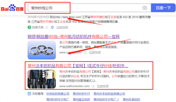 我們公司與常州*豐紡織品有限公司合作中,對這個(gè)公司所經(jīng)營的紗線這個(gè)行業(yè)提供了快速排名,與該公司的合作,更多的客戶讓我們公司為其提供快速排名,通過每一次合作,我們公司不斷完善自己,同時(shí)希望合作伙伴在經(jīng)營的路上越來越好。