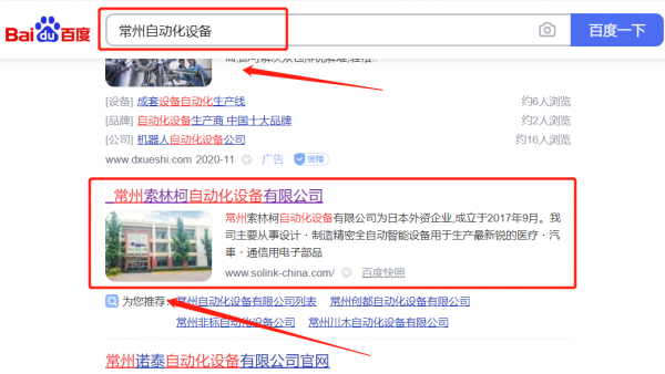 常州索*柯自動化設(shè)備有限公司百度關(guān)鍵詞排名案例欣賞
