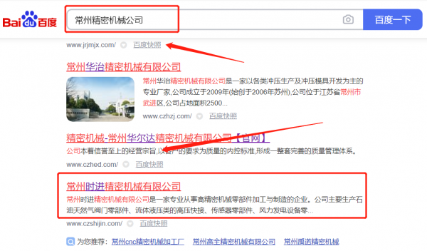 常州時*精密機(jī)械有限公司新站排名排名效果展示