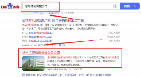 常州拓*精密機(jī)械有限公司新站排名最快上詞效果展示