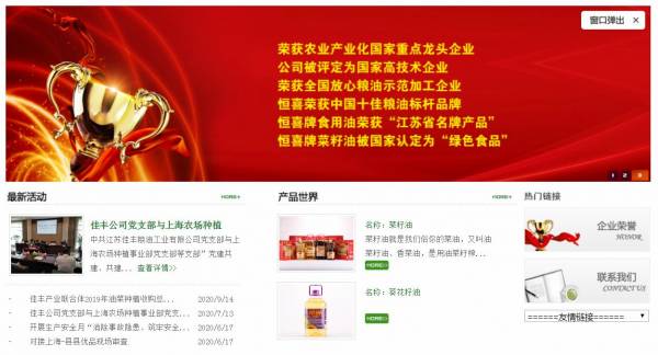 公司自成立以來,一直以“產(chǎn)業(yè)報國,行業(yè)領(lǐng)先”為目標,以“臻善臻美,普享幸福”為宗旨,先后獲得了農(nóng)業(yè)產(chǎn)業(yè)化國家重點龍頭企業(yè)、國家高新技術(shù)企業(yè)、全國少數(shù)民族特需商品定點生產(chǎn)企業(yè)、全國糧油加工 50 強企業(yè)、全國放心糧油加工示范企業(yè)、中國油菜籽加工 10 強企業(yè)、江蘇省農(nóng)業(yè)型科技企業(yè)等榮譽。“恒喜”商標被國家認定為中國馳名商標,恒喜牌菜籽油被認定為江蘇名牌產(chǎn)品,被國家認定為綠色食品,并榮獲綠色食品博覽會金獎。