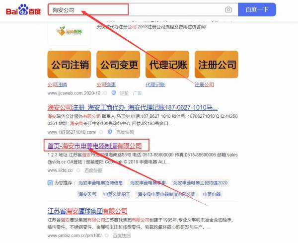 海安市申*電器制造有限公司網(wǎng)站優(yōu)化最快上詞效果展示