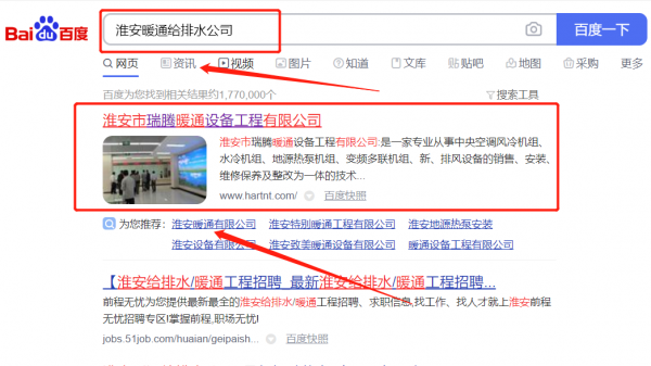 淮安市*騰暖通設(shè)備工程有限公司百度關(guān)鍵詞排名整合營(yíng)銷推廣