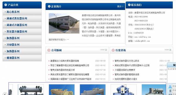 姜堰市恒*液壓機(jī)械制造有限公司選用我司企業(yè)機(jī)械設(shè)備行業(yè)的網(wǎng)站優(yōu)化產(chǎn)品,其SEO關(guān)鍵詞有 姜堰恒達(dá),泰州恒達(dá),泰州市恒*換熱設(shè)備制造有限公司。其特點(diǎn)是用很合適的展示方式、展示效果、站點(diǎn)框架,把客戶及其用戶很關(guān)心的問(wèn)題突出表現(xiàn);并以簡(jiǎn)潔明朗的設(shè)計(jì)風(fēng)格,清晰展現(xiàn)公司水平實(shí)力,確保一秒抓住目標(biāo)用戶眼球,給用戶留下良好的第一印象。姜堰市恒*液壓機(jī)械制造有限公司成立于1988年,是經(jīng)姜堰市市場(chǎng)監(jiān)督管理局審核的有資質(zhì)的公司,其統(tǒng)一社會(huì)信用代碼:913212041***27912E 。公司地址:泰州市姜堰區(qū)婁莊鎮(zhèn)先進(jìn)村。