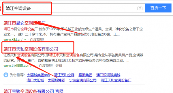 江蘇天和空調(diào)設(shè)備有限公司選用我司企業(yè)空調(diào)設(shè)備行業(yè)的網(wǎng)站優(yōu)化產(chǎn)品,其SEO關(guān)鍵詞有空調(diào)設(shè)備。通過(guò)對(duì)搜索引擎目標(biāo)關(guān)鍵詞優(yōu)化,使目標(biāo)網(wǎng)站的相關(guān)信息顯示在百度首頁(yè),為企業(yè)挖掘更多的潛在客戶(hù)的同時(shí)帶來(lái)海量的商機(jī)。江蘇天和空調(diào)設(shè)備有限公司成立于2004年,是經(jīng)靖江市市場(chǎng)監(jiān)督管理局審核的有資質(zhì)的公司,其統(tǒng)一社會(huì)信用代碼:9132128275795309XB。公司地址:江蘇省靖江經(jīng)濟(jì)開(kāi)發(fā)區(qū)城北園區(qū)山南路9號(hào)(經(jīng)營(yíng)場(chǎng)所:靖江經(jīng)濟(jì)開(kāi)發(fā)區(qū)城北園區(qū)文昌路8號(hào))。