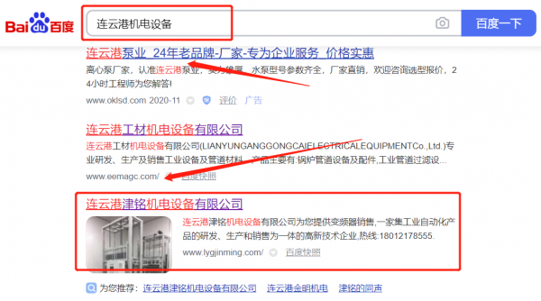 連云港*銘機電設備有限公司SEO到首頁無排名不收費
