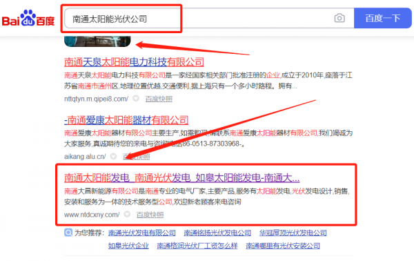 我們公司與南通*昌新能源有限公司合作中,對(duì)這個(gè)公司所經(jīng)營(yíng)的太陽能光伏這個(gè)行業(yè)提供了SEO,與該公司的合作,更多的客戶讓我們公司為其提供快速排名,通過每一次合作,我們公司不斷完善自己,同時(shí)希望合作伙伴在經(jīng)營(yíng)的路上越來越好。