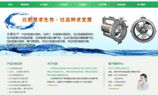 啟東市*源泵業(yè)有限公司選用我司企業(yè)機(jī)電設(shè)備行業(yè)的網(wǎng)站優(yōu)化產(chǎn)品,其SEO關(guān)鍵詞有 曝氣機(jī),潛水排污泵,潛水?dāng)嚢铏C(jī),潛水電機(jī)。其特點是用很合適的展示方式、展示效果、站點框架,把客戶及其用戶很關(guān)心的問題突出表現(xiàn);并以簡潔明朗的設(shè)計風(fēng)格,清晰展現(xiàn)公司水平實力,確保一秒抓住目標(biāo)用戶眼球,給用戶留下良好的第一印象。啟東市*源泵業(yè)有限公司成立于2000年,是經(jīng)啟東市市場監(jiān)督管理局審核的有資質(zhì)的公司,其統(tǒng)一社會信用代碼:91320681718**40839。公司地址:江蘇省啟東市科技創(chuàng)業(yè)園永陽路388號 。