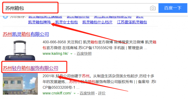 蘇州市輕舟箱包服飾有限公司選用我司企業(yè)箱包行業(yè)的網(wǎng)站優(yōu)化產(chǎn)品,其SEO關(guān)鍵詞有箱包。搜索品牌詞,首頁(yè)至少霸占5條,通過(guò)營(yíng)銷型網(wǎng)站、媒體文章、口碑等方式,達(dá)到全方位霸屏,全面展示企業(yè)實(shí)力。蘇州市輕舟箱包服飾有限公司成立于2001年,是經(jīng)蘇州市市場(chǎng)監(jiān)督管理局審核的有資質(zhì)的公司,其統(tǒng)一社會(huì)信用代碼:9132050673573542X5。公司地址:江蘇省蘇州吳中經(jīng)濟(jì)開發(fā)區(qū)越溪街道天鵝蕩路588號(hào)2幢。