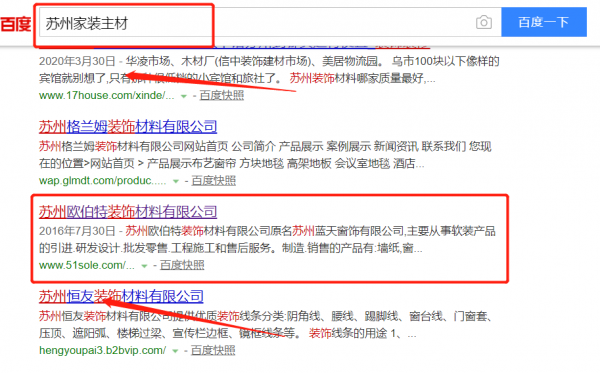 我們公司與蘇州歐伯特裝飾材料有限公司合作中,對(duì)這個(gè)公司所經(jīng)營(yíng)的家裝主材這個(gè)行業(yè)提供了關(guān)鍵詞搜索排名,與該公司的合作,更多的客戶(hù)讓我們公司為其提供關(guān)鍵詞搜索排名,通過(guò)每一次合作,我們公司不斷完善自己,同時(shí)希望合作伙伴在經(jīng)營(yíng)的路上越來(lái)越好。