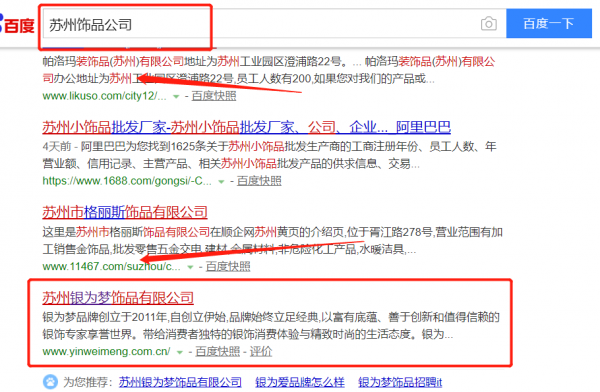 我們公司與蘇州銀為夢飾品有限公司合作中,對這個公司所經(jīng)營的飾品這個行業(yè)提供了百度快照排名,與該公司的合作,更多的客戶讓我們公司為其提供百度快照排名,通過每一次合作,我們公司不斷完善自己,同時希望合作伙伴在經(jīng)營的路上越來越好。