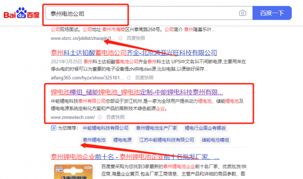 中*鋰電科技泰州有限公司關(guān)鍵詞排名最快上詞效果展示