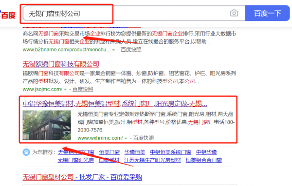 無(wú)錫*美門窗公司選用我司企業(yè)門窗型材的網(wǎng)站優(yōu)化產(chǎn)品,其SEO關(guān)鍵詞有門窗型材。搶占百度、360搜索、搜狗等搜索引擎首頁(yè)自然排名(PC端 + 手機(jī)端),高客流量導(dǎo)入,SEO推廣效果更突出。無(wú)錫*美門窗公司成立于2008年,是經(jīng)無(wú)錫市市場(chǎng)監(jiān)督管理局審核的有資質(zhì)的公司,其統(tǒng)一社會(huì)信用代碼:9132020**78343285T。公司地址:江蘇省無(wú)錫市人民中路88號(hào)825室。