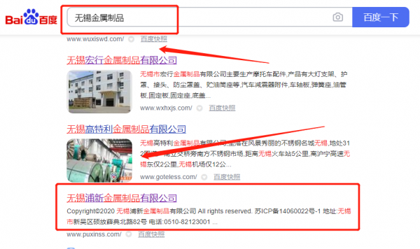 無錫浦*(中新)金屬制品有限公司關(guān)鍵詞排名最快上詞效果展示