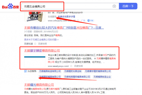 無錫耀*精密模具有限公司網(wǎng)站推廣排名效果展示