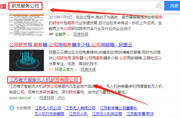 我們公司與江蘇唯天智能無人機研發(fā)公司合作中,對這個公司所經營的研發(fā)服務這個行業(yè)提供了百度快照排名,與改公司的合作,更多的客戶讓我們公司為其提供百度快照排名,通過每一次合作,我們公司不斷完善自己,同時希望合作伙伴在經營的路上越來越好。