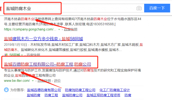 我們公司與鹽城百德防腐工程有限公司合作中,對(duì)這個(gè)公司所經(jīng)營的防腐木業(yè)這個(gè)行業(yè)提供了關(guān)鍵詞搜索排名,與該公司的合作,更多的客戶讓我們公司為其提供關(guān)鍵詞搜索排名,通過每一次合作,我們公司不斷完善自己,同時(shí)希望合作伙伴在經(jīng)營的路上越來越好。
