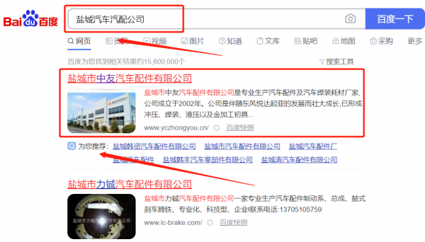 鹽城市中*汽車配件有限公司優(yōu)化排名最快上詞效果展示