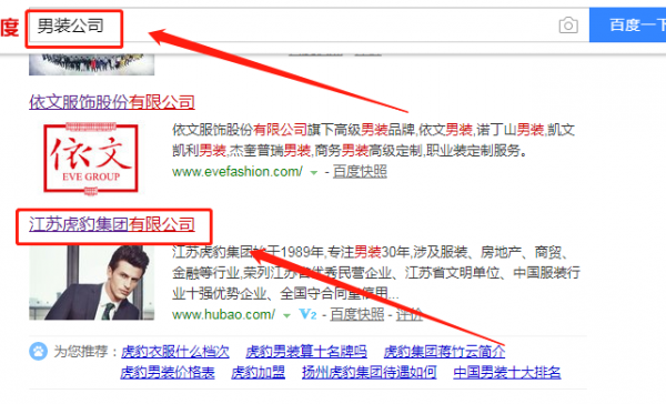 我們公司與江蘇虎豹集團(tuán)有限公司合作中,對這個公司所經(jīng)營的男裝這個行業(yè)的SEO推廣積累了豐富的經(jīng)驗;同時在該行業(yè)的SEO推廣等多元化的男裝領(lǐng)域中也有很多的成功的案例;但愿通過我們的合作,能夠幫助到合作伙伴在同行業(yè)中遙遙領(lǐng)先。