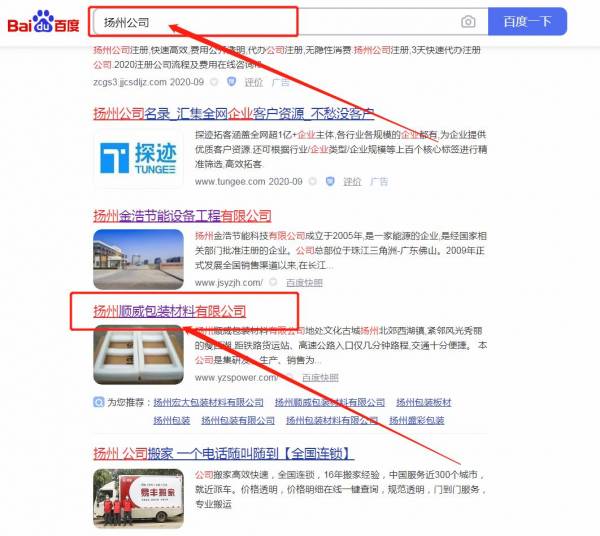 揚(yáng)州*威包裝材料有限公司百度關(guān)鍵詞排名最快上詞效果展示