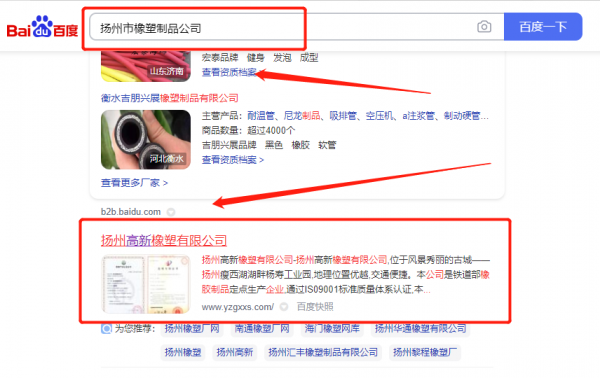 揚州高*橡塑有限公司萬詞霸屏保證在首頁效果
