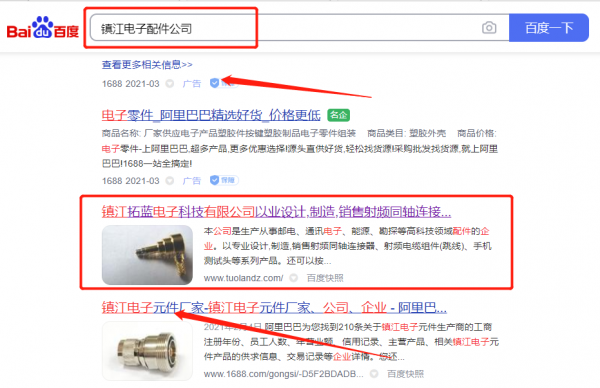 鎮(zhèn)江*藍(lán)電子科技有限公司選用我司電子配件的網(wǎng)站優(yōu)化產(chǎn)品,其SEO關(guān)鍵詞有電子配件。專注于高品質(zhì)網(wǎng)絡(luò)品牌運(yùn)營(yíng)推廣服務(wù),在網(wǎng)絡(luò)中樹立企業(yè)品牌形象,提高搜索關(guān)鍵詞轉(zhuǎn)換率,以及多終端廣告展現(xiàn)!鎮(zhèn)江*藍(lán)電子科技有限公司成立于2011年,是鎮(zhèn)江市市場(chǎng)監(jiān)督管理局審核的有資質(zhì)的公司,其統(tǒng)一社會(huì)信用代碼:913211005**4462145。公司地址:江蘇省鎮(zhèn)江市京口區(qū)諫壁焦灣村。