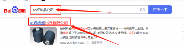 紹興科*化纖有限公司百度排名快照案例欣賞