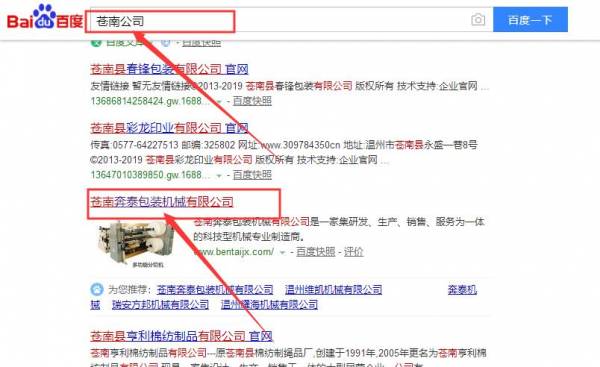 蒼南奔泰包裝機(jī)械有限公司和我公司簽訂百度快照排名項目
