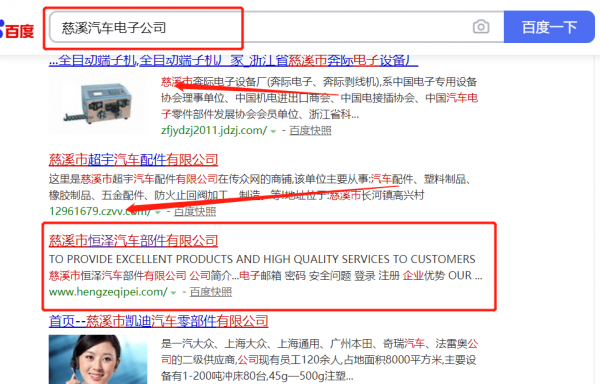 我們公司與慈溪市*澤汽車部件有限公司合作中,對這個公司所經(jīng)營的汽車電子這個行業(yè)提供了百度快照排名,與該公司的合作,更多的客戶讓我們公司為其提供百度快照排名,通過每一次合作,我們公司不斷完善自己,同時希望合作伙伴在經(jīng)營的路上越來越好。