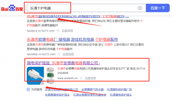 樂(lè)清市*德惠電器有限公司關(guān)鍵詞推廣到首頁(yè)按天扣費(fèi)