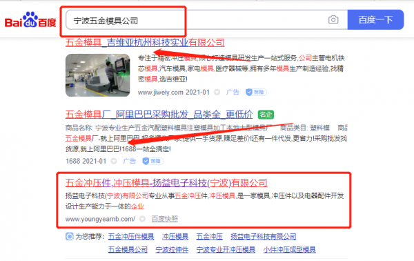 我們公司與揚*電子科技(寧波)有限公司合作中,對這個公司所經(jīng)營的五金模具這個行業(yè)提供了網(wǎng)站推廣,與該公司的合作,更多的客戶讓我們公司為其提供關(guān)鍵詞搜索排名,通過每一次合作,我們公司不斷完善自己,同時希望合作伙伴在經(jīng)營的路上越來越好。