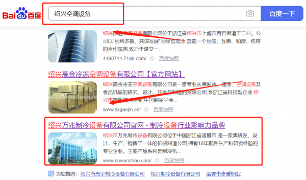 紹興市萬*制冷設備有限公司萬詞霸屏到首頁按天扣費