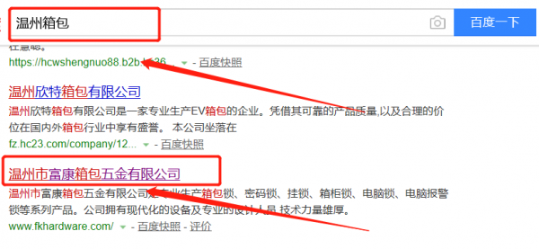 我們公司與溫州市富康箱包五金有限公司合作中,對(duì)這個(gè)公司所經(jīng)營(yíng)的箱包這個(gè)行業(yè)提供了百度快照排名,與該公司的合作,更多的客戶讓我們公司為其提供百度快照排名,通過(guò)每一次合作,我們公司不斷完善自己,同時(shí)希望合作伙伴在經(jīng)營(yíng)的路上越來(lái)越好。