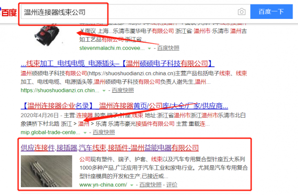 我們公司與溫州市益能電器有限公司合作中,對這個公司所經(jīng)營的連接器線束這個行業(yè)提供了搜索引擎優(yōu)化推廣,與該公司的合作,更多的客戶讓我們公司為其提供搜索引擎優(yōu)化推廣,通過每一次合作,我們公司不斷完善自己,同時希望合作伙伴在經(jīng)營的路上越來越好。