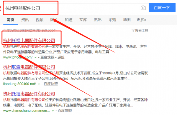杭州托福電器配件有限公司選用我司企業(yè)電器配件行業(yè)的網(wǎng)站優(yōu)化產(chǎn)品,其SEO關(guān)鍵詞有電器配件。按天計(jì)費(fèi),最快7天上詞,不到首頁不扣費(fèi)。關(guān)鍵詞質(zhì)量保證,白帽SEO符合百度算法,360、搜狗、移動(dòng)端等排名效果免費(fèi)贈(zèng)送。杭州托福電器配件有限公司成立于2003年,是經(jīng)杭州市市場監(jiān)督管理局審核的有資質(zhì)的公司,其統(tǒng)一社會(huì)信用代碼:91330109749488212F。公司地址:浙江省杭州市蕭山區(qū)寧圍街道二橋村。