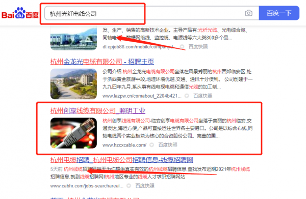 杭州創(chuàng)*線纜有限公司新站排名排名案例欣賞