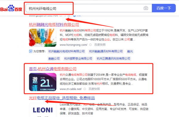 杭州眾*電纜有限公司新站排名最快上詞效果展示