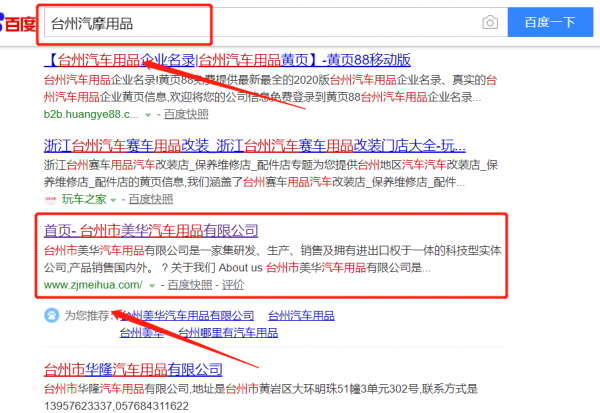 我們公司與臺州市美華汽車用品有限公司合作中,對這個(gè)公司所經(jīng)營的汽摩用品這個(gè)行業(yè)提供了快速排名,與該公司的合作,更多的客戶讓我們公司為其提供快速排名,通過每一次合作,我們公司不斷完善自己,同時(shí)希望合作伙伴在經(jīng)營的路上越來越好。