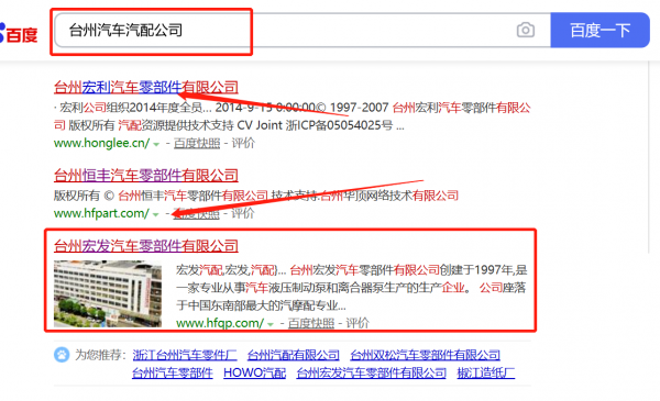 我們公司與臺(tái)州*發(fā)汽車零部件有限公司合作中,對(duì)這個(gè)公司所經(jīng)營(yíng)的汽車汽配這個(gè)行業(yè)提供了關(guān)鍵詞搜索排名,與該公司的合作,更多的客戶讓我們公司為其提供SEO網(wǎng)站優(yōu)化,通過(guò)每一次合作,我們公司不斷完善自己,同時(shí)希望合作伙伴在經(jīng)營(yíng)的路上越來(lái)越好。