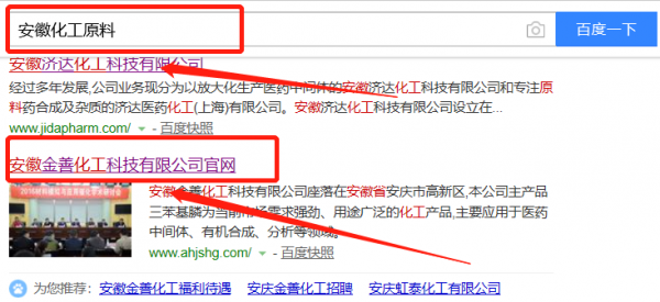 我們公司與安徽金善化工科技有限公司合作中,對(duì)這個(gè)公司所經(jīng)營(yíng)的化工原料這個(gè)行業(yè)提供了SEO推廣,與該公司的合作,更多的客戶讓我們公司為其提供SEO推廣,通過每一次合作,我們公司不斷完善自己,同時(shí)希望合作伙伴在經(jīng)營(yíng)的路上越來越好。