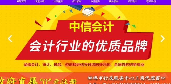 蚌埠中*會計服務有限公司選用我司企業(yè)會計服務行業(yè)的網(wǎng)站優(yōu)化產(chǎn)品,其SEO關(guān)鍵詞有 蚌埠中*會計服務有限公司,蚌埠公司注冊,蚌埠注冊公司,蚌埠代賬公司,蚌埠代賬會計。其特點是用很合適的展示方式、展示效果、站點框架,把客戶及其用戶很關(guān)心的問題突出表現(xiàn);并以簡潔明朗的設計風格,清晰展現(xiàn)公司水平實力,確保一秒抓住目標用戶眼球,給用戶留下良好的第一印象。蚌埠中*會計服務有限公司成立于2010年,是經(jīng)蚌埠市市場監(jiān)督管理局審核的有資質(zhì)的公司,其統(tǒng)一社會信用代碼:91340300***82548X2。公司地址:安徽省蚌埠市體育路名仕公館1501--1503號(老二中南門往東30米)。