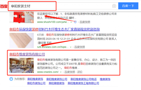 阜陽市維度裝飾有限公司與本司簽約百度快照排名協(xié)議