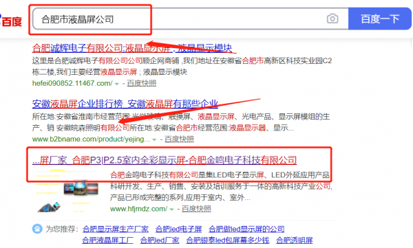 我們公司與合肥*鳴電子科技有限公司合作中,對(duì)這個(gè)公司所經(jīng)營(yíng)的液晶屏這個(gè)行業(yè)提供了網(wǎng)絡(luò)營(yíng)銷,與該公司的合作,更多的客戶讓我們公司為其提供快速排名,通過每一次合作,我們公司不斷完善自己,同時(shí)希望合作伙伴在經(jīng)營(yíng)的路上越來越好。