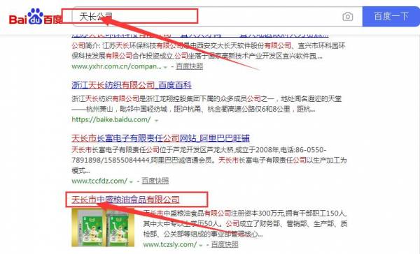 天長市中*糧油食品有限公司同我公司簽署百度快照排名事宜